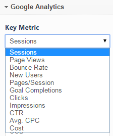 At the top of the report a graph shows the results associated with the Key Metric you select (e.g., sessions, page views, goal completions, etc.).