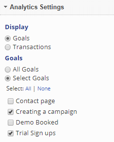 • If Goals is selected, then you may choose specific Goal(s) that appear in the list based on the goals you've set in your Google Analytics account (items shown here are examples).