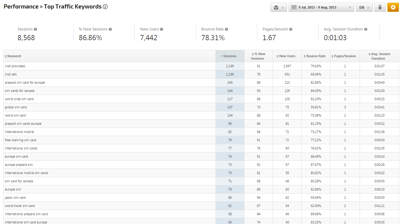 The Analytics Top Traffic Keywords report displays the campaign's keywords that generate the most traffic in the relevant search results.
