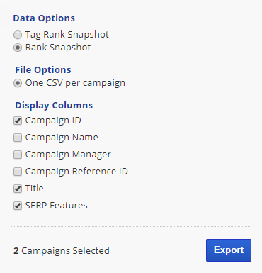 Use this tool to easily export rank data by Tag Groups from multiple campaigns in your account.