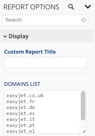 If a domain list was already added to the report and there is a need to add more or to adjust the listing domain list go to Report Options > Display and make appropriate changes and click Apply Changes button.