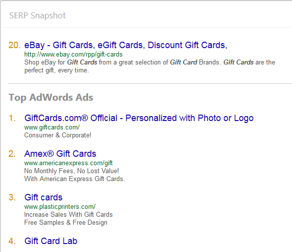 If there are advertisements associated with the keyword, you can view the Top AdWords ad titles and content (possibly competitor content that has helped them to rank in the top ad positions).