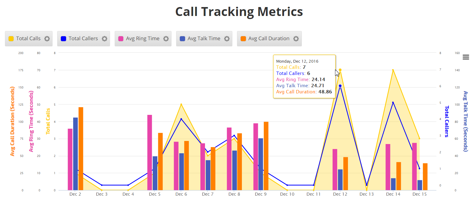 Call Tracking Calls Detail reports, as well as Insight Graphs, Metric Widgets, and white label dashboards.