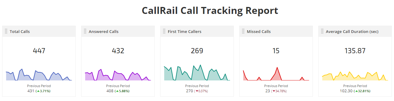 CallRail data can be viewed and presented in Insight Graphs and Metric Widgets and in the CallRail Overview report.