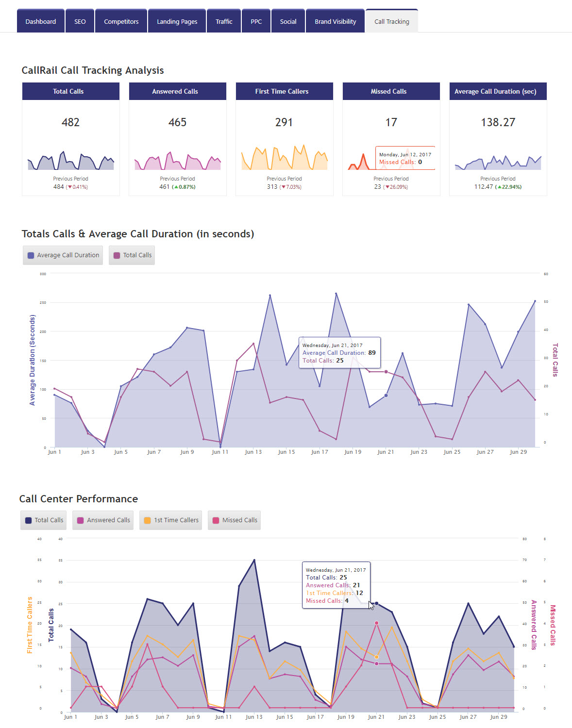 CallRail provides call tracking, recording, and analytics for digital marketers. Authorizing a connection between CallRail and Rank Ranger enables you to showcase your marketing efforts in white label Dashboards and PDF reports that include data from your most important tools.