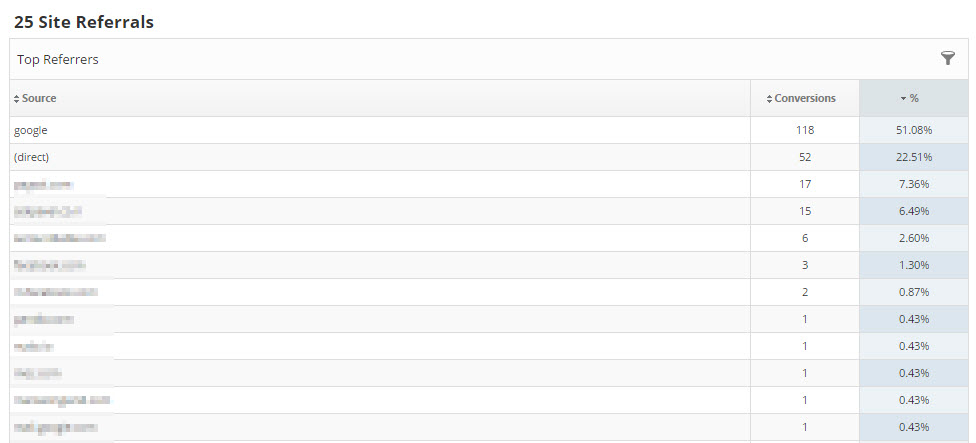 Visits By Source Displays the number of visits by source that brought visitors to your website. For example, every referral to a web site has an origin, or source. Possible sources include: "google” (the name of a search engine), "facebook.com” (the name of a referring site), "spring_newsletter” (the name of one of your newsletters), and "direct” (users that typed your URL directly into their browser, or who had bookmarked your site).