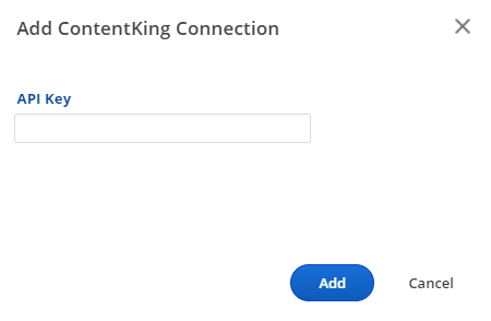 Paste the API Token copied from the ContentKing account section into the API Key field of the popup input field.