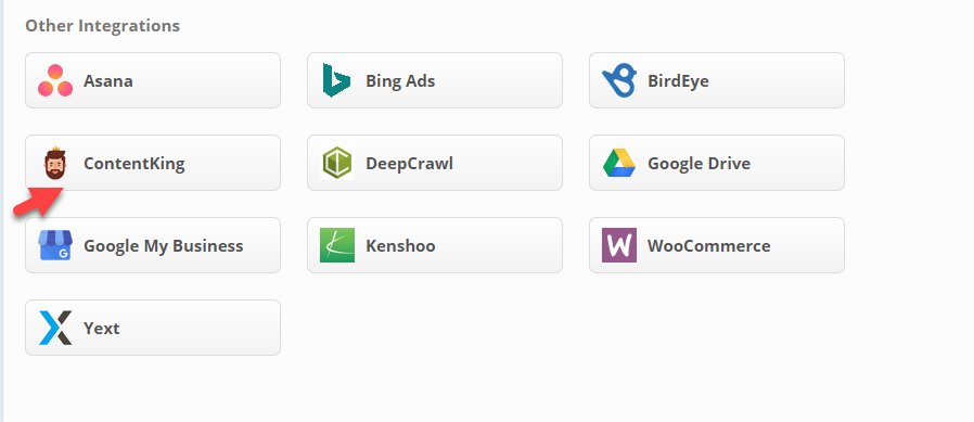 - In the scroll to ContentKing, click the down arrow and select the appropriate account.
