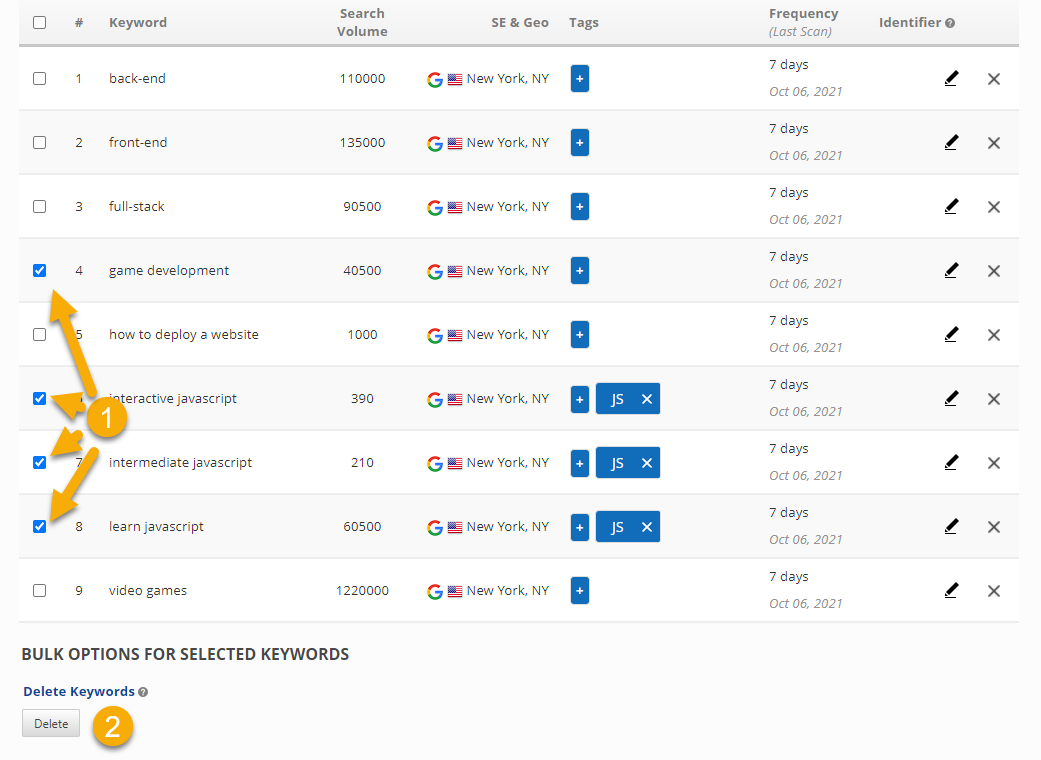 snapshot for each competitor's ranking of the selected keyword is provided and includes: