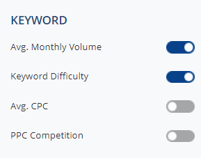 SERP indicators, and rank positions for the selected keyword for up to 20 competitors.