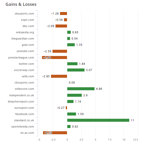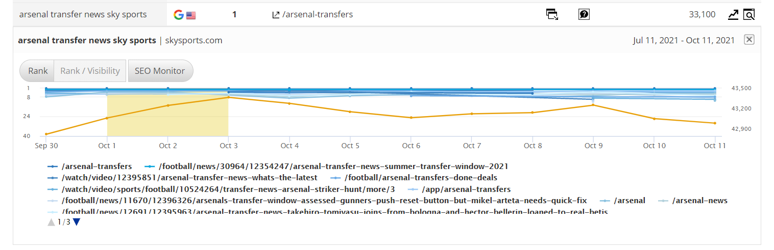 In the above graph, you may notice that on several dates there isn't a line representing the number 3 or 4 position, this is because one of the sites that are in the number 1 or number 2 rank position was also ranking for position 3 or 4.