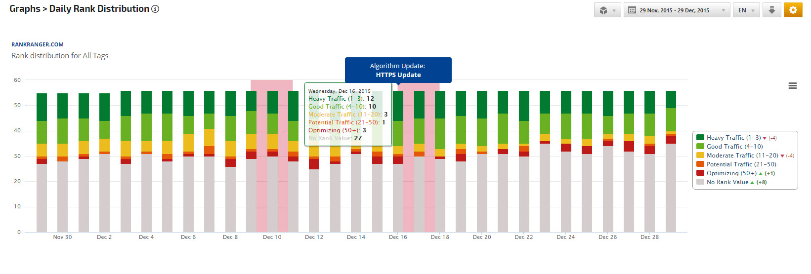 Insight Graph using the Rank > Rank Position Stats metric. In this example, rank position trend for one website is demonstrated.