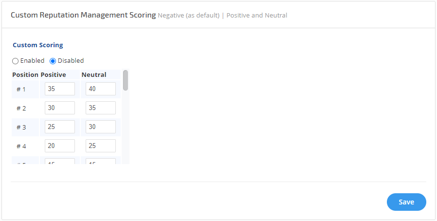 - In the Rank Score section enter the numbers you want to be attributed to each of the top 100 search engine result positions