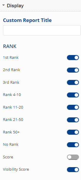 • Score: The Score column represents the overall strength of the domain. This is a legacy metric that is in use by some long-time customers based on their original requirements of a point system for rank positions 1, 2, 3 and 4 through 10, summed and divided by the total number of keywords selected for the report. Our Visibility Score replaced this old metric, however, we allowed the original score to remain for their use.