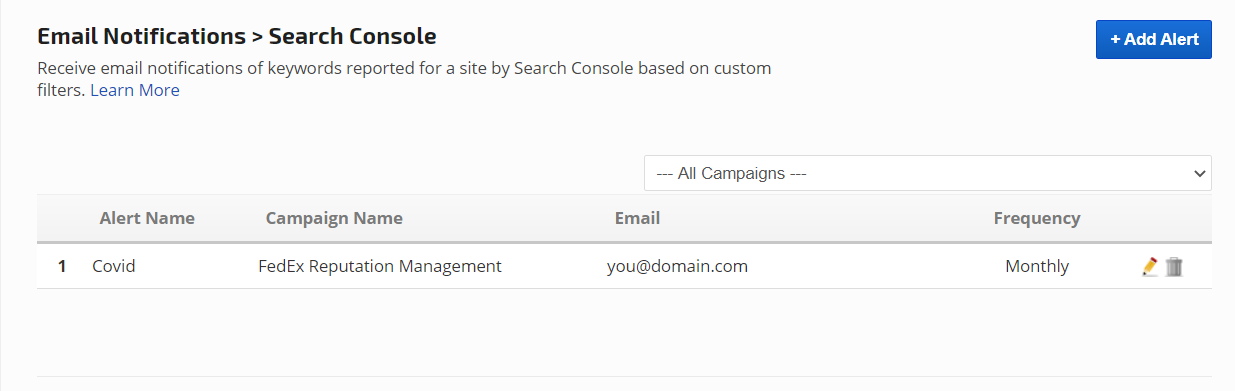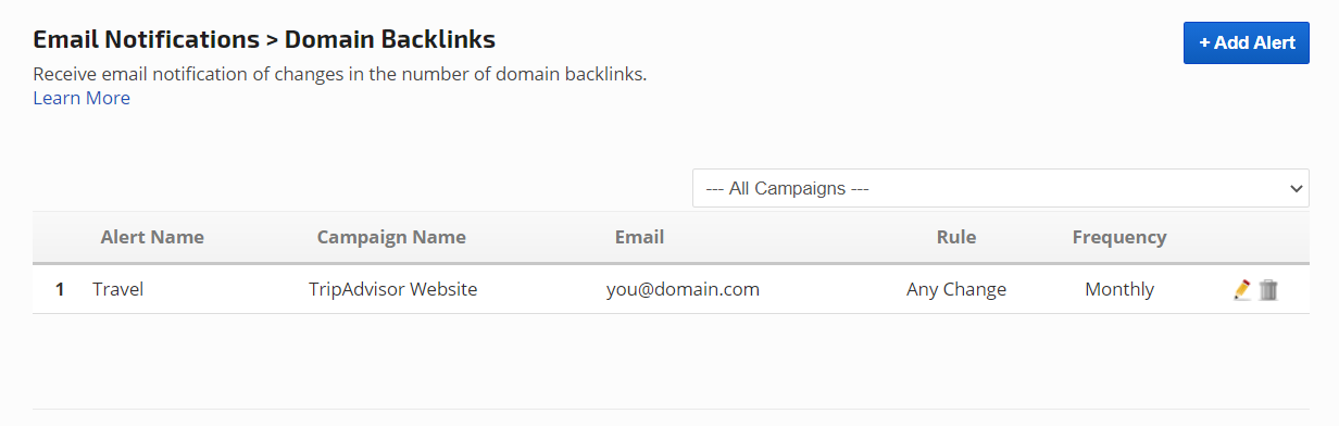 If your SEO platform package allows for multiple users, you should take advantage of that feature and create user logins for each person who is authorized to manage rank tracking campaigns, client dashboards, white-label PDF reports, profiles, and/or links. When an authorized user logs in and accesses the Email Notifications screen, they are able to create notifications that will be sent to their email address. If everyone uses the account default login, email notifications are only sent to the account default email address.