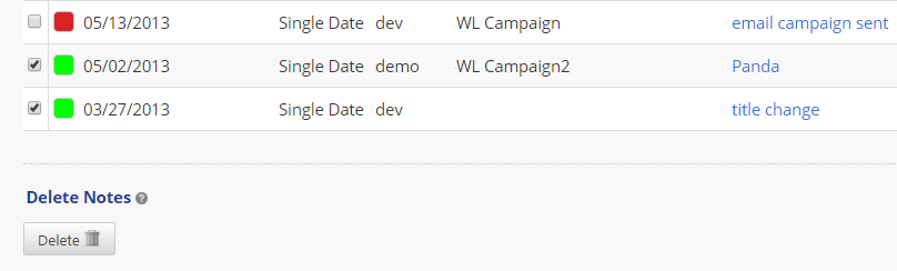 Notes can be deleted from your account by checking the individual items and clicking the Delete button.