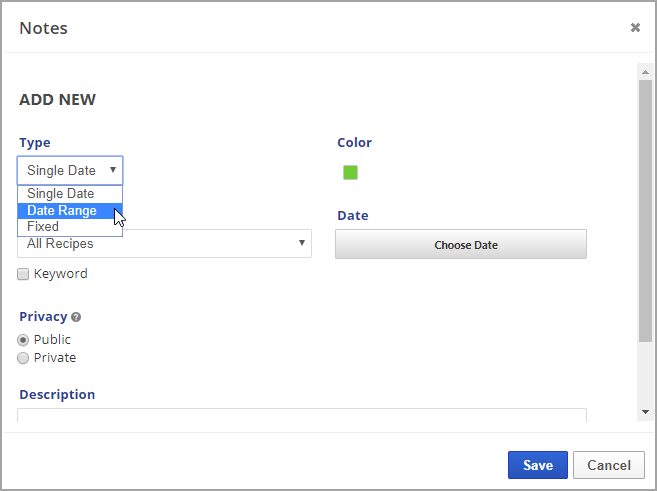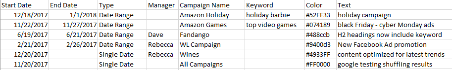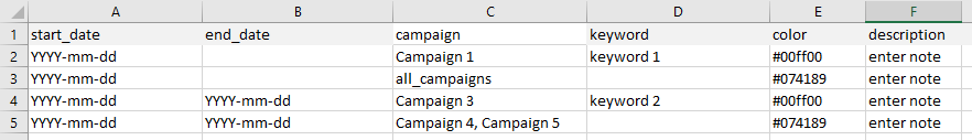 • start_date field: in YYYY-MM-DD format, the date you want the note displayed in reports and graphs.