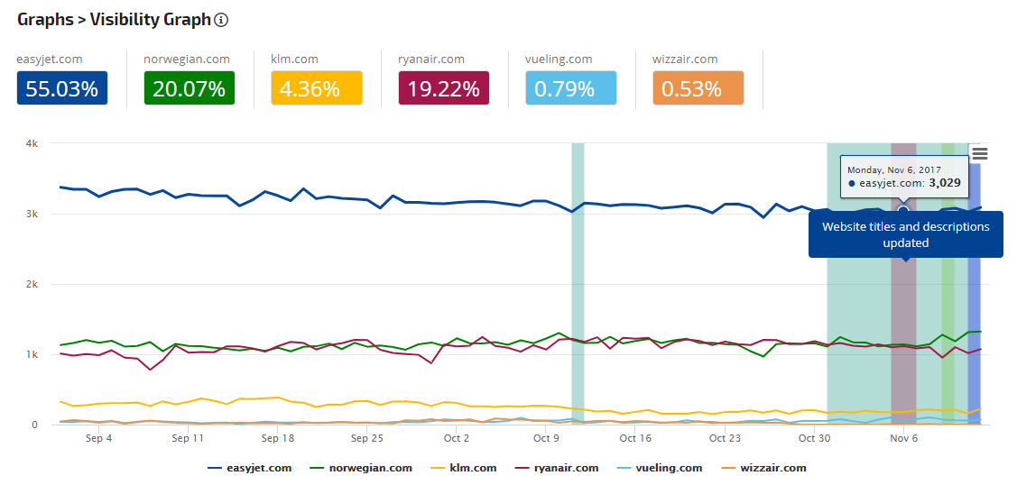 The Notes feature allows you to enter descriptions and details about steps you've taken on a specific date or date range to improve SEO, events that might affect SEO or anything you'd like to help jog your memory or highlight your efforts for your team members or clients to see. It's simple to use, with only a few clicks and your reports and graphs can be enhanced with data you've entered.
