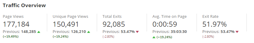 The Traffic Graph can be set to the key metric of Exit Pages or Sessions, and you can compare the current period to a previous period.