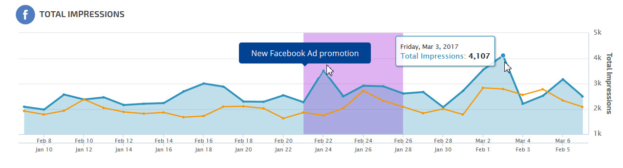 The Facebook Insights Posts report offers an overall and itemized look at the performance of the posts made to the Facebook page. The data available here presents insights into post performance trends that can be broken down by traffic source. Additionally, the report gives you a post-by-post performance itemization.