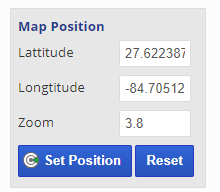 Zoom in or out to the location you want to view and then click the Set Position button in the Map Position section of Report Options > Display.