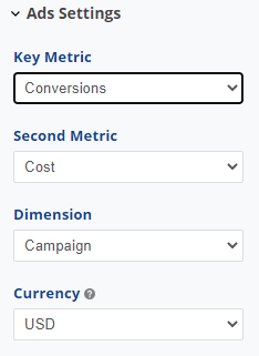 In this case the Key Metric was Conversions and the share percentage of the conversions between the two Google Ads campaigns. The second metric is Cost.