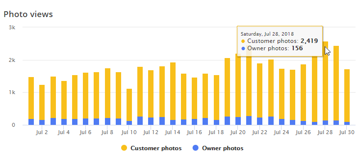 This chart visually details the number of currently published photos that have been uploaded to the Google My Business listing by customers vs. the business owner.