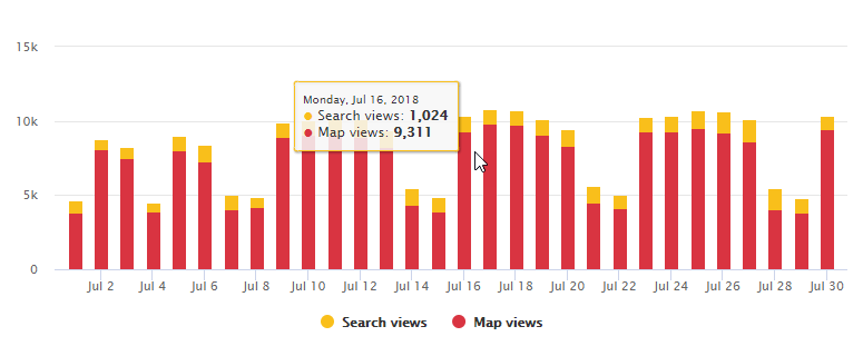 This graph provides the number of search views vs. map views for each day during the selected reporting period.