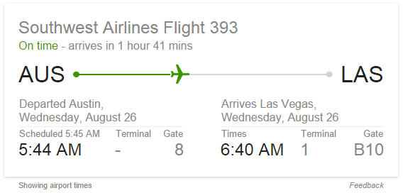 This clever answer box enables a quick view of the current flight status by searching for the airline and flight number.