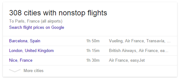 Flight answer box with airport listings