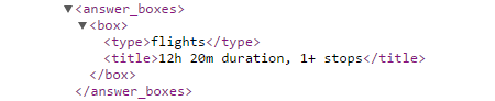 If an answer box with current flight information displays in the SERPs for your keyword, the API returns the "current flight" type.