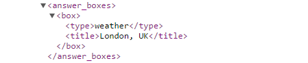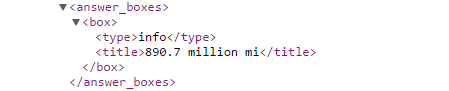 If an answer box of the currency type exists for the keyword search results page, the API indicates the existence and labels the type as "currency conversion".