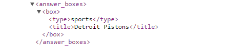 • For APIs that have Google SERP Features included, Featured Snippets are identified in the google_serp_features > answer boxes > answer_boxab_type: Featured Snippet. Included in that result is the title, url and image_url when they exist in the Featured Snippet.