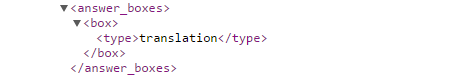 If a dictionary definition answer box displays in the search results for a keyword you're tracking in Rank Ranger, the API will return a box-type dictionary.