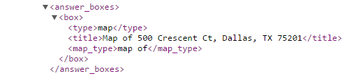 API Results for SERP Answer Box of Map Location
