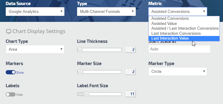 Depending upon the selected metric, you may choose from Line, Curved Line, Column, or Area chart types.