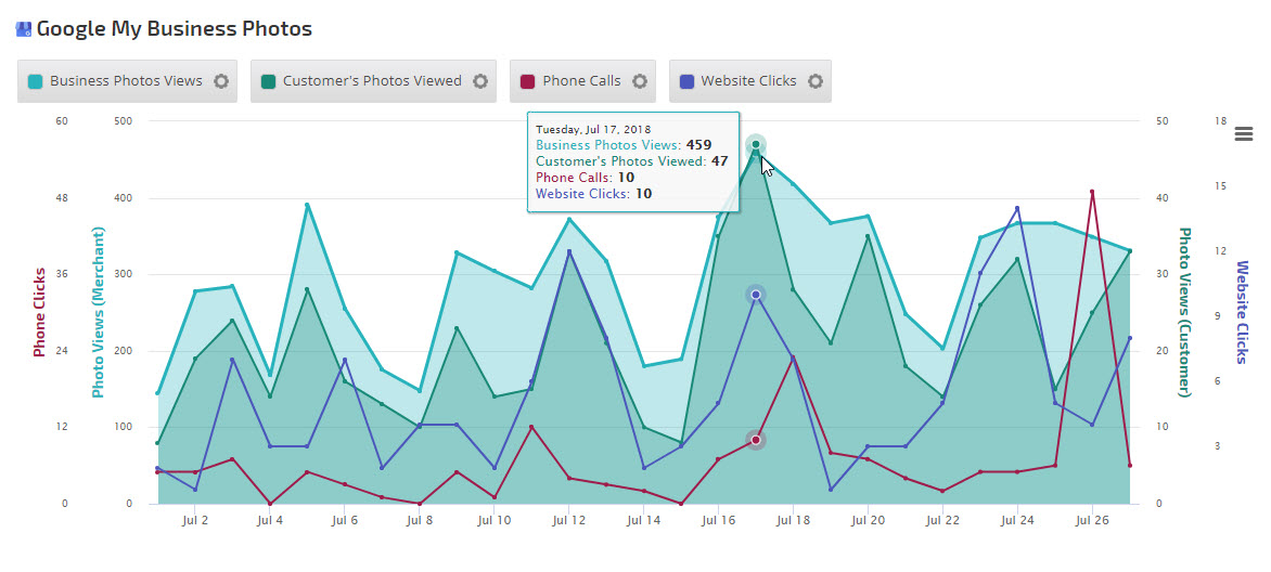 Yext: Average Rating, Facebook Check-ins, Facebook CTA Clicks, Facebook Page Impressions, Facebook Page Post Impressions, Facebook Page Views, Facebook Talking About This, Facebook Likes, Facebook Were Here, Featured Message Clicks, Foursquare Daily Checkins, Google Customer Actions, Google Customer Actions Phone Calls, Google Customer Actions Get Directions, Google Customer Actions Website Clicks, Google Map Views, Google Search Views, Google Search Queries, Google Search Queries Direct, Google Search Queries Discovery, Instagram Posts, New Listings Live, New Reviews, PowerListings Live, Profile Updates, Profile Views, Publisher Suggestions, Searches, Social Posts, Yelp Customer Actions, Yelp Page Views