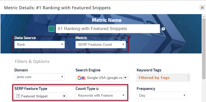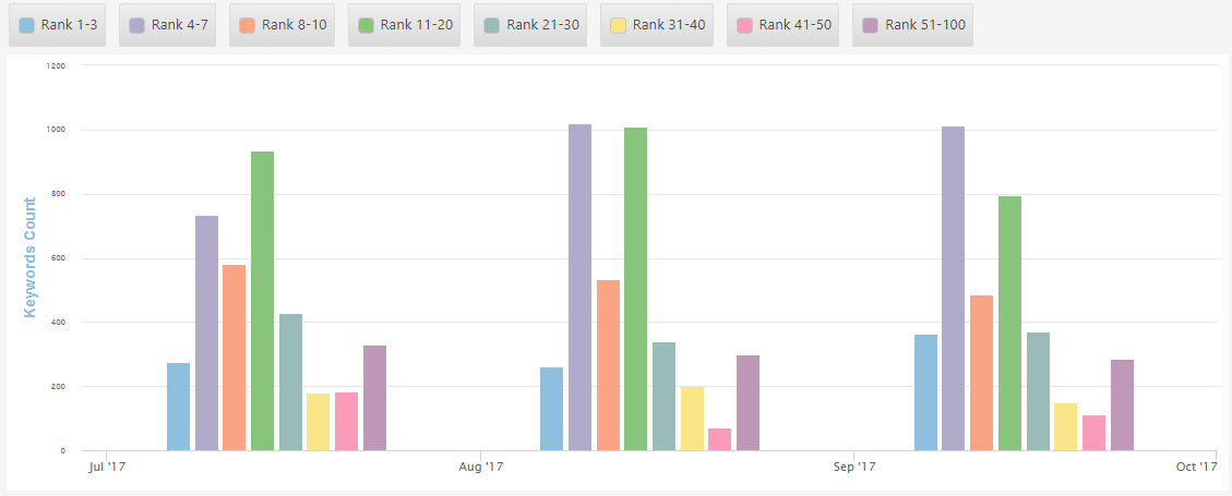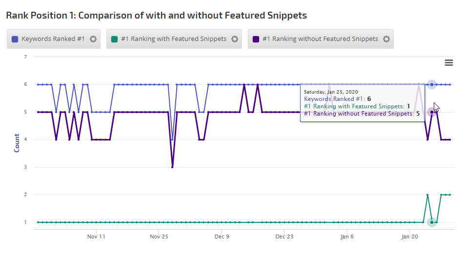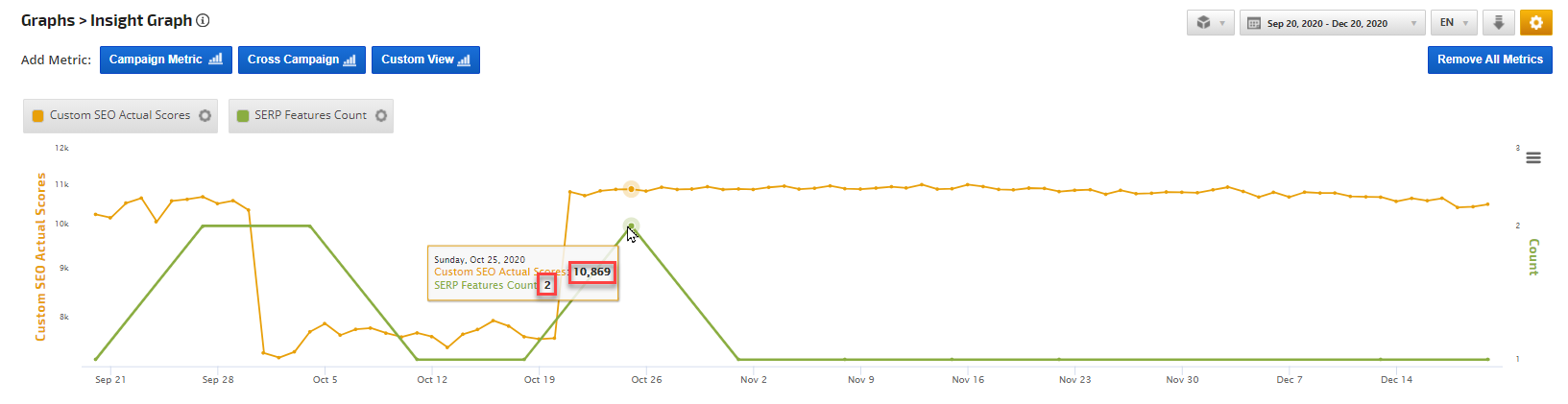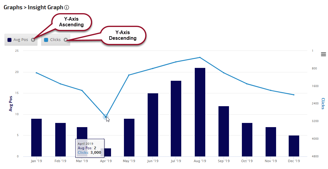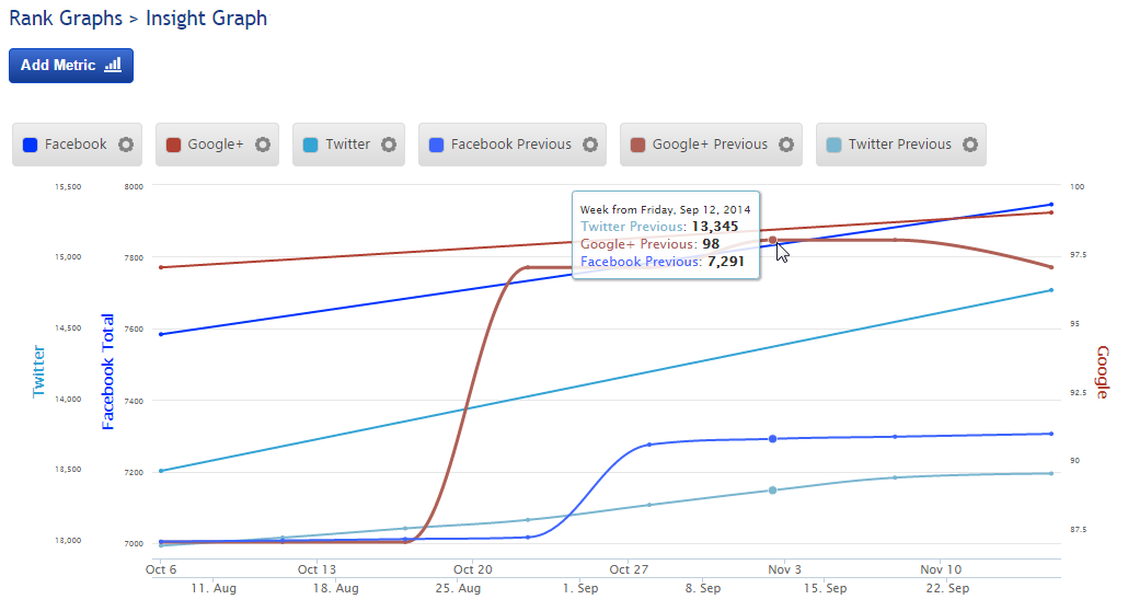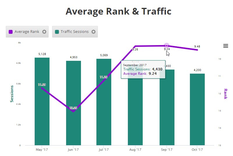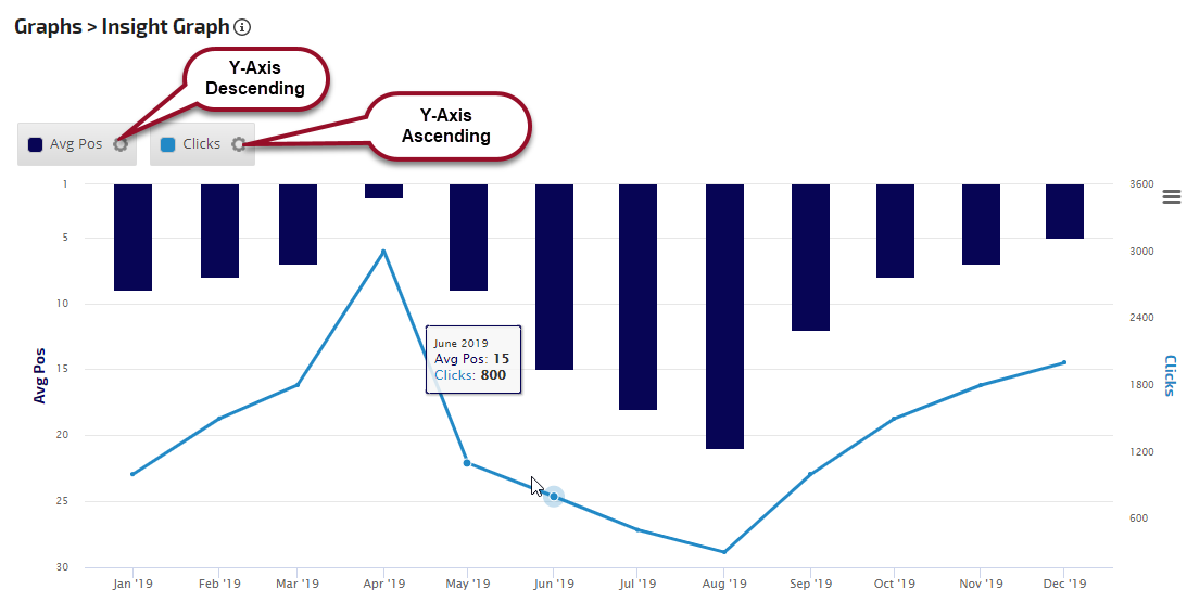 The Insight Graph gives you the freedom to create graphs with blended metrics, date ranges, chart types, etc. choosing from our rank data and a variety of third-party integrations.