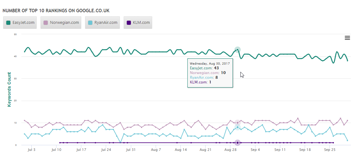 Trending competitor average rank is one of the many ways you can use the average rank metric in Insight Graphs.