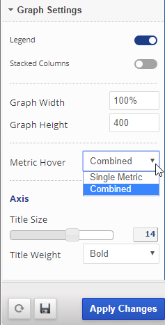 • Select Combined or Single Metric Hover; Combined displays data of all graph metrics for the point on the graph that you hover over, and Single displays only hover point data for the single metric.