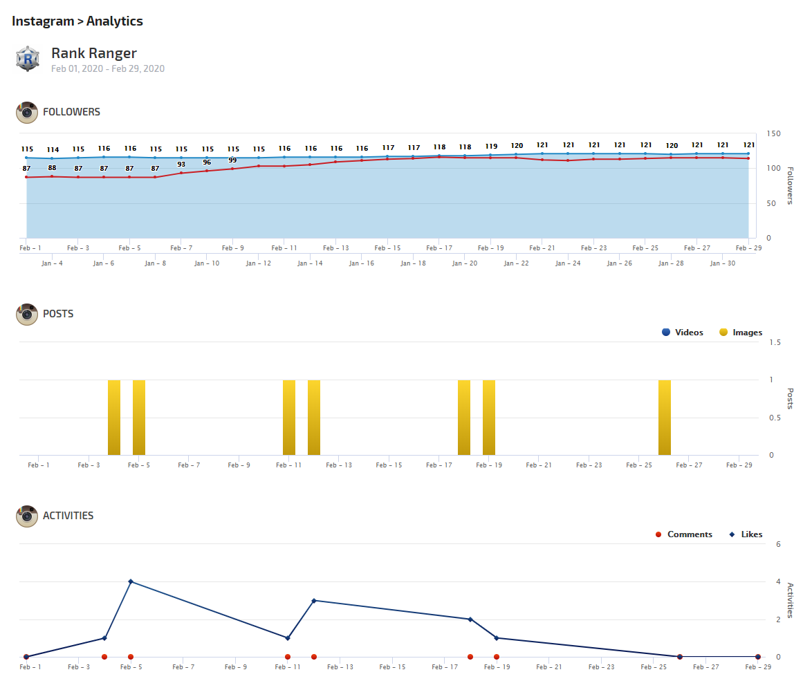 Integrate your Instagram account with Rank Ranger and connect it to a rank tracking campaign to access this Instagram Analytics report.