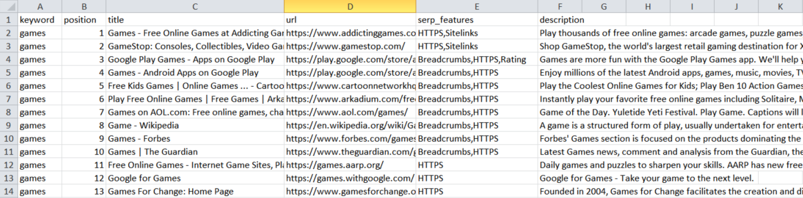 - List of URLs ranked for the targeted keyword(s)