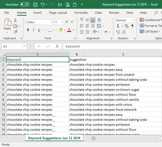 - Change the column title from "Suggestion" to "keyword"