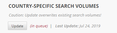 The Local Volume Settings option is available at the bottom of the Campaign Settings > Keywords screen for API packages. To utilize this option, scroll to the bottom of the Keywords screen, select a country and click the Update button.