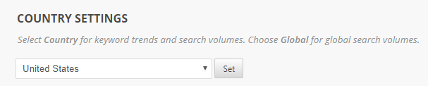 • Average Global Search Volume (country-based volume can be achieved using the Local Volume Settings)