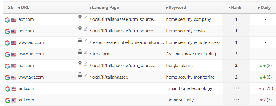 • Landing Page: URL of the page that ranked highest for the keyword on the last day of the report period
