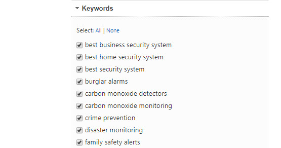 Select the Keywords you want displayed in the report (use the All or None link for quick selection).
