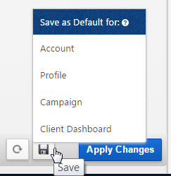 Then expand Report Options again and hover over the Save icon and select Save as Default for Client Dashboard.