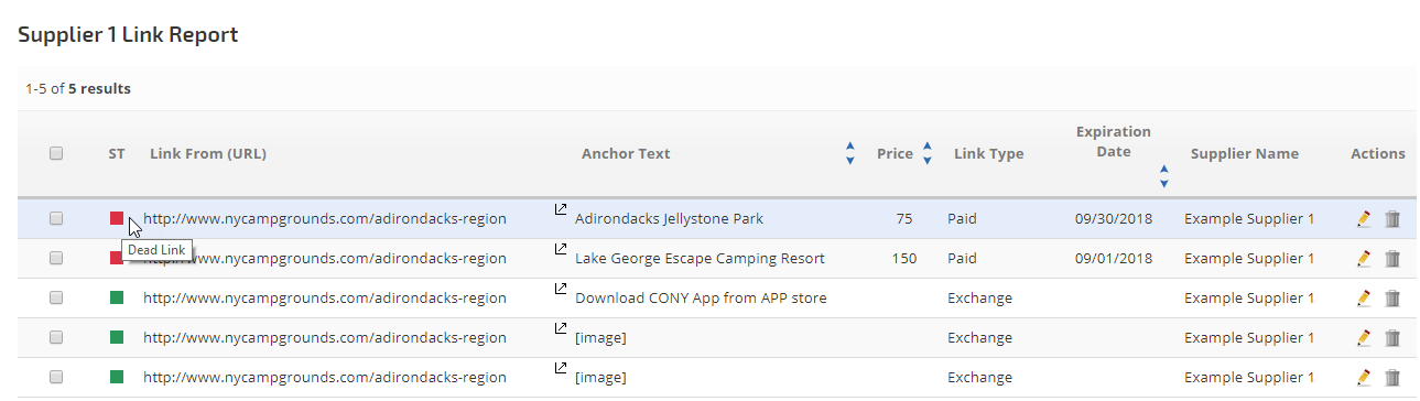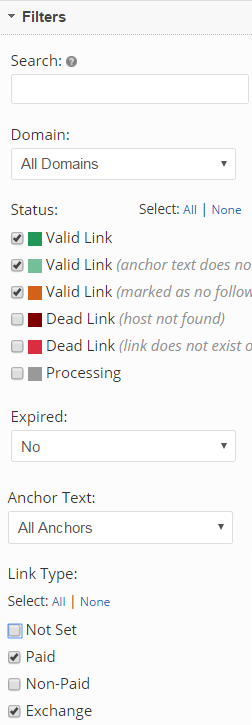 When paying for backlinks, it can be helpful to filter the Link Dashboard report for Dead Links. There are two options to select from: