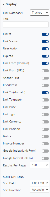 The above report views are only a few examples of ways to create and analyze link building reports, refer to Report Options for the many filters and metrics that can be viewed in this link dashboard.